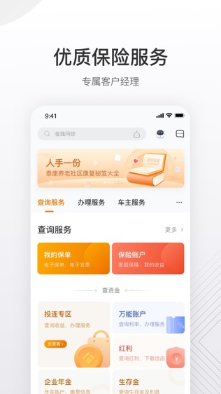 2.泰康各子公司的保单、服务统一视图,您只要一个账号即可拥有;