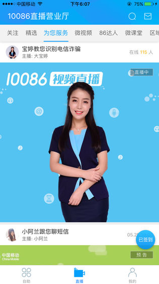 10086视频直播服务,中国移动官方出品,新的客户服务平台。