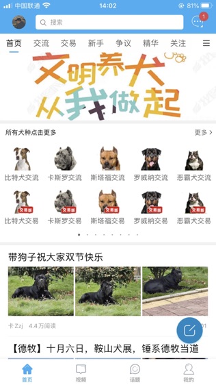 猛犬俱乐部官网APP,中国具有影响力的猛犬交流平台。拥有会员数量超过60余万人,开设比特犬、卡斯罗、斯塔福、恶霸犬、罗威纳、杜高犬等诸多犬种版块。现在是免费注册,您可以在里面发表留言,与全国爱好者共同交流,还可以免费发布交易信息,猛犬俱乐部提供专业的交易担保平台,可以为网络购物全程护航,保证您的切身利益,加入会员诸多惊喜,赶快来加入吧!