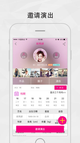 ·档期—记录艺人预约、休息、有空时间,方便档期预约。