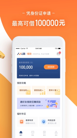 人人贷,9年老平台,专业值得信赖。如果您急需用钱,就来人人贷借款,最高可借100000元,解您燃眉之急。