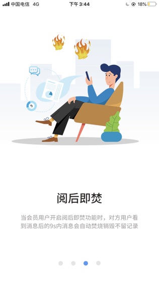 ?阅后即焚:对方用户看到消息后,9s内消息会自动焚烧销毁不留痕迹,并禁止对方截图。