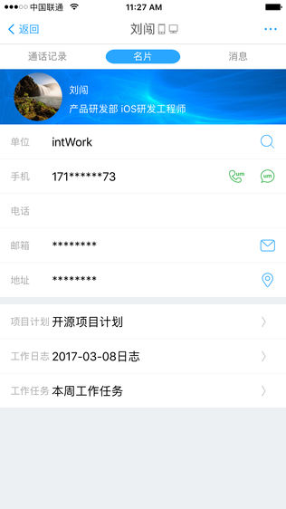 2、支持丰富的单聊、群聊图文消息传播,以及特有的企业免费电话