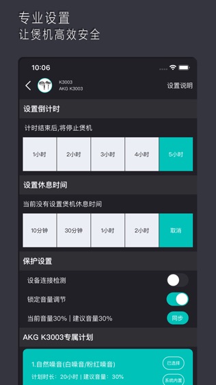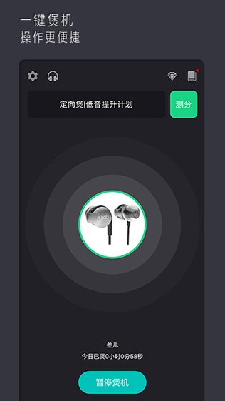 【耳机连接检测】耳机断开连接后,自动暂停煲机,起到保护作用。同时接入耳机后,会自动提示是否马上煲机。