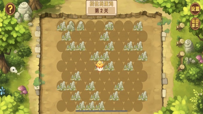 捉住捣蛋鸡苹果版游戏玩法1、开始小鸡在中间,每次放置石头后小鸡会移动一步。
