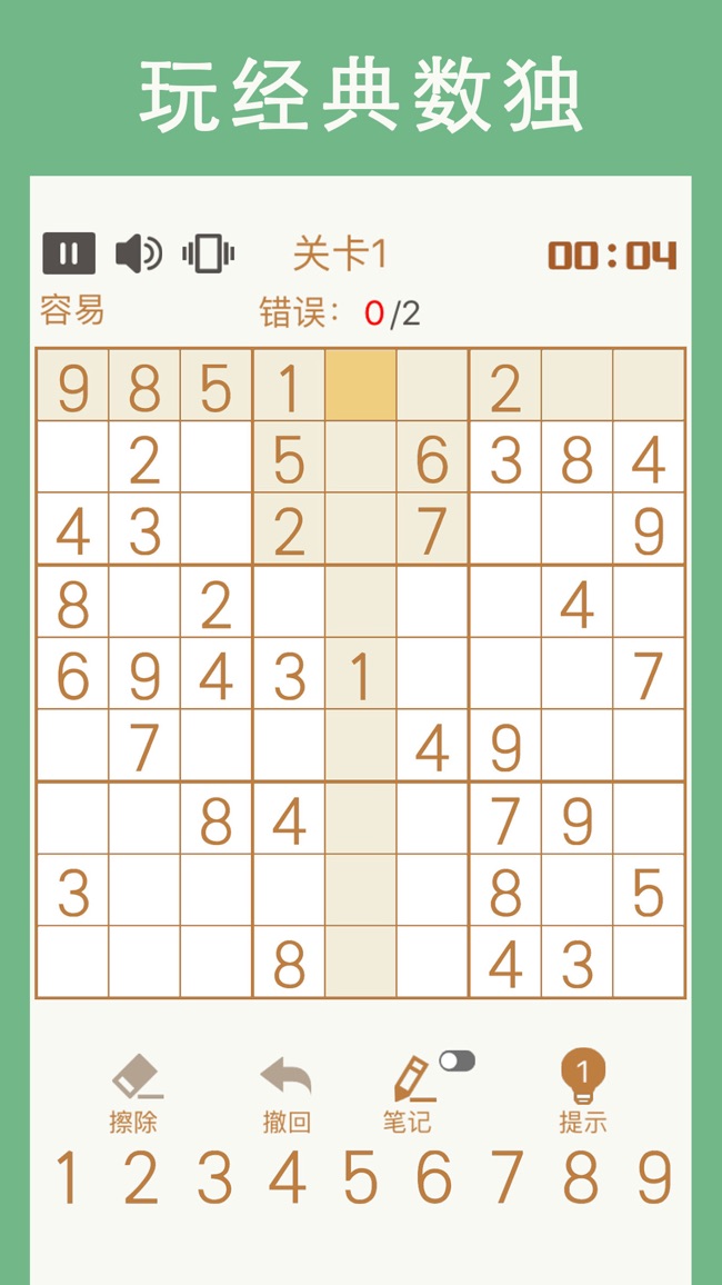 智力数独游戏亮点1、数独游戏的规则很简单,你需要把1~9这几个数字填进空着的格子里。