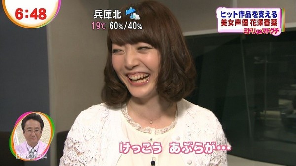 “兵库北”称号出自花泽香菜参与的某日本综艺节目的视频截图。在该截图中,花泽香菜露出了无比带感的笑容,画面上正在同步滚动的日本各地天气预报刚好滚动到了“兵库北 雨 19℃ 60%/40%”,屏幕上还有 “美女声优 花泽香菜”字样,所以该表情也有着兵库北的别称。这个微笑最早出现在某日本声优专题网站,后来被发布于Acfun匿名版。