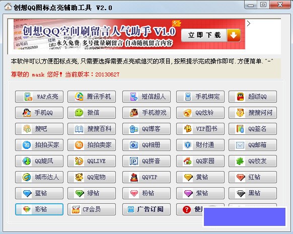 创想QQ图标点亮辅助工具是一款简单易用的qq图标点亮工具,它可以帮助用户快速点亮QQ的图标,目前支持37个图标点亮。