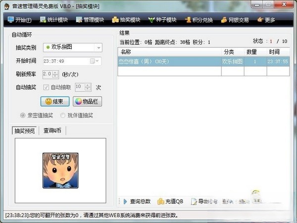 7.自动抽奖功能:支持定时自动抽取天使乐园/沉船/七彩/紫钻寻宝等物品