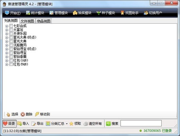 2.物品管理功能:支持多标签页管理历史统计,可以在管理模块导入/导出文本/分类汇总/删除/领取/赠送/兑换/转到网页等操作