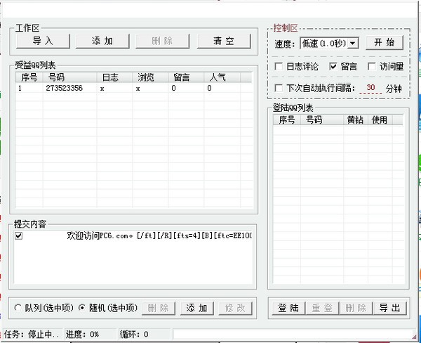2.本软件可刷QQ空间留言、QQ空间人气、日志评论、日志浏览;