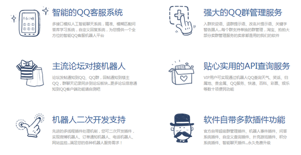 第五代QQ机器人更新了大量为您精选的功能扩展,满足您的各种功能需求开发,第五代QQ机器人开发更容易接口开发自己动手做您想要的机器人功能,一切是那么的随意那么的自然。
