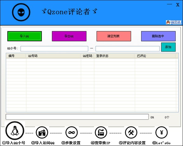 Qzone评论者是一款批量评论QQ空间说说的软件,支持批量导入QQ小号操作,支持随机生成被访问评论者的QQ号码,24小时无人工值守运行。