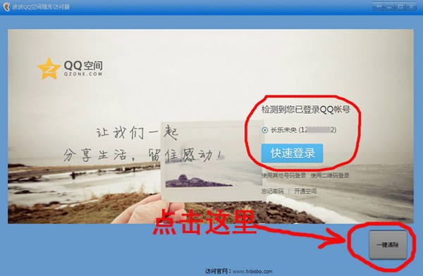 3、你无需登录,只要点击“一键清除”,即可删除你在好友qq空间的浏览记录