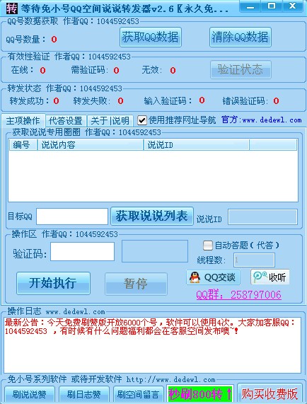 等待免小号QQ空间说说转发器2.6更新: