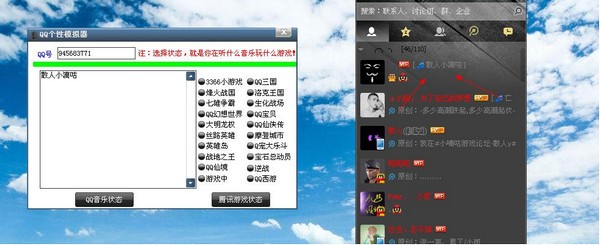 散人qq个性状态模拟器是一款修改qq状态的模拟工具,可以修改多种应用的显示状态,包括qq音乐、qq仙境、逆战等等游戏时的状态显示,帮助您更好地彰显自己的个性