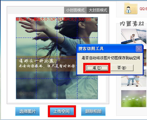 程序将自动运行切图,同时上传封面图片到你的空间相册。