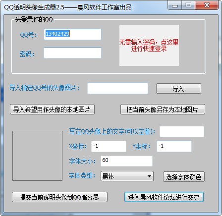 此软件是用来辅助生成超酷的透明QQ头像的,传统的方法非常复杂,普通用户难以操作,通过这个工具,只要点一下按钮就生成好了。