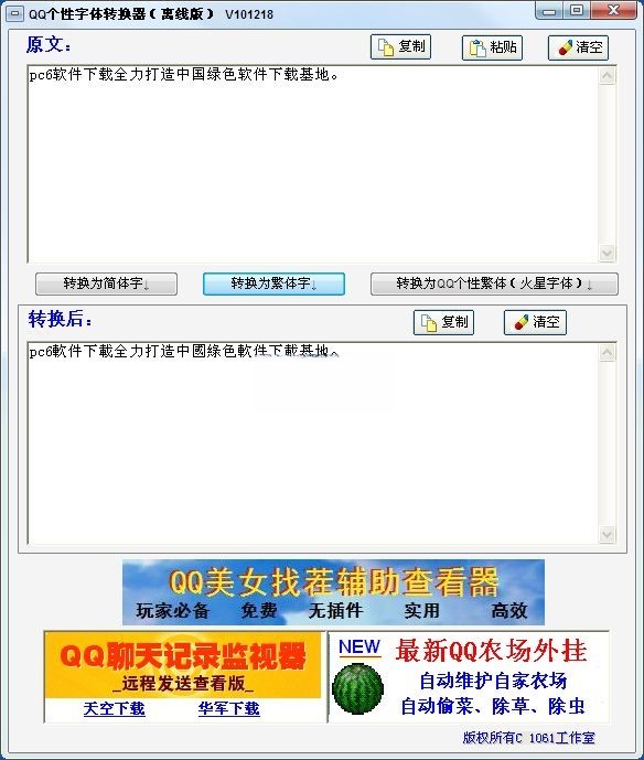 QQ个性字体转换器可在离线状态下任意转换字体为简体、繁体或QQ个性火星字体。操作简单,是您上网个性化不可缺少的工具。