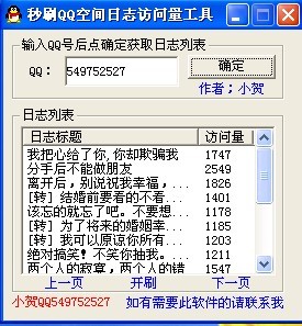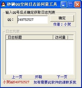 秒刷QQ空间日志访问量工具,快速提升qq空间访问量,短时间内迅速积累人气,输入你的qq号码,软件就会自动刷你的qq空间了。