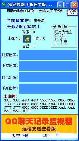 QQ斗地主角色版能记忆上家、下家、对家、自己出过的牌及的剩余的牌,自动判断开局,无须人工操作,专版适用于目前人气极高的QQ棋牌游戏:QQ斗地主角色版和QQ斗地主角色版(二副牌)、qq欢乐斗地主。