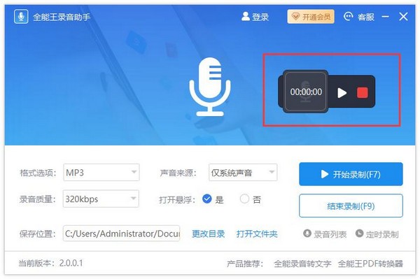 全能王录音助手是一款操作简单,支出高清录制,多种模式,无损音质的录音软件,支持电脑系统声音录制、麦克风录制,还原录制音频的原本环境,输出高品质的录音效果。