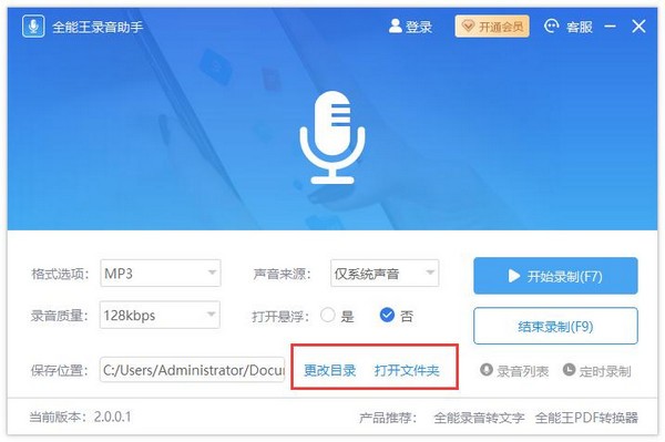 6、相关软件 如果需要把录音转成文字,或者需要转换PDF等其他文件 可以点击[产品推荐]下载我们的相关产品。