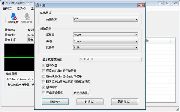 5、后台静默方式录音功能,您可自定义热键以隐藏或显示软件前台界面,默认切换热键为Ctrl+Alt+H。