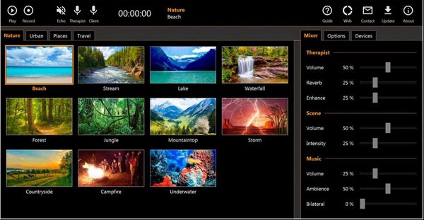 在您控制场景的强度的同时,通过城市街道,拥挤的地铁或拥挤的体育场的声音指导您的客户。通过Sharm Live,您可以为您的客户提供终极治疗体验,在这里您几乎都在场景中。