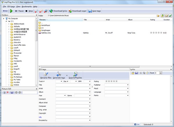 mp3Tag可以下载任何数量的歌曲文件的歌词和封面该MP3标签编辑器可以节省您的MP3/FLAC/APE等