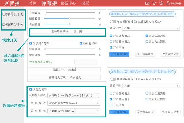 主播可以通过语音模板来定制弹幕姬怎么读弹幕/礼物/关注