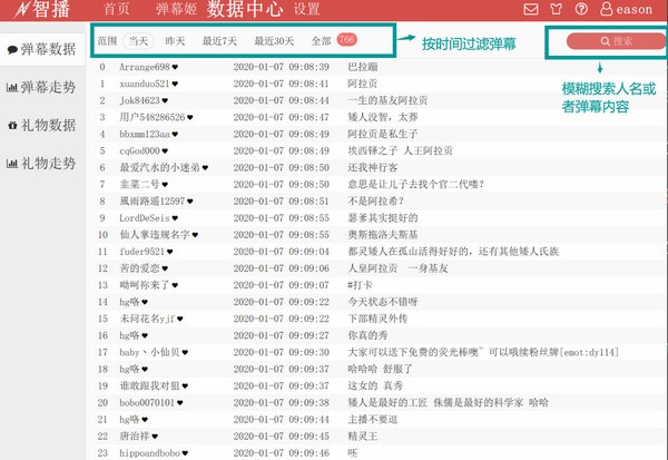 数据中心 历史数据查询统计,历史弹幕/收入统计