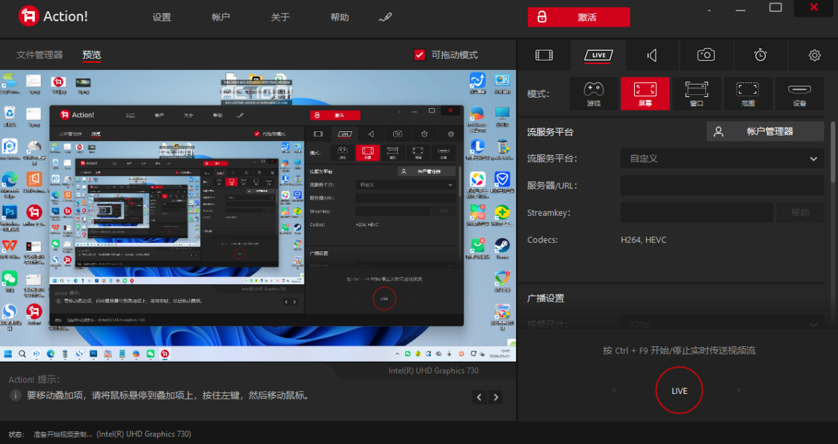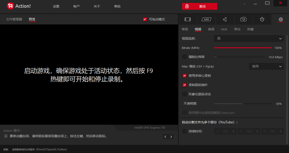 Mirillis Action!是一款屏幕录制软件,以超高清视频质量录制直播和实时录制Windows桌面,使用Action!可以进行录制和直播正在玩得游戏、网络播放器视频、录制音乐、屏幕截图、添加摄像头画面、麦克风声音等等!