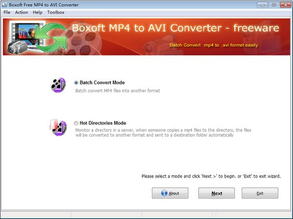 Boxoft free MP4 to AVI Converter为您提供了两种不同的模式:批处理模式和热目录模式。批处理模式可以同时处理数百个MP4文件;热目录模式可以自动处理写在MP4文件中。