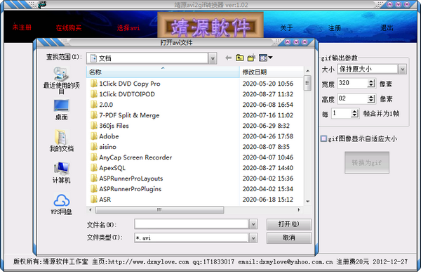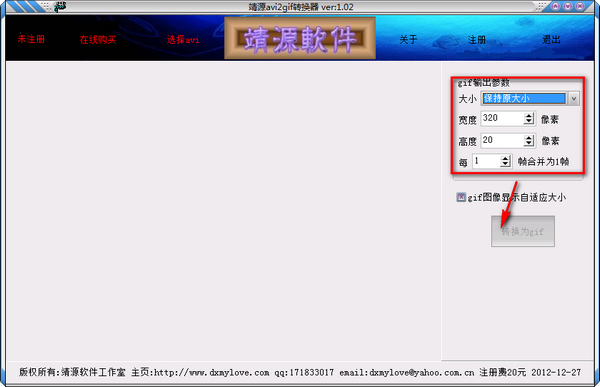 靖源avi2gif转换器是一款把avi视频转换为gif动画的工具,支持多帧合并为1帧,支持自定义图片大小.操作方便,简单灵活,转换速度快,转换效果好!