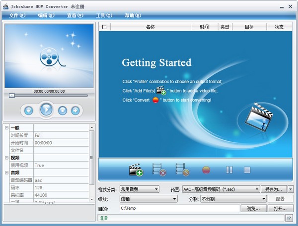 Joboshare MOV Converter是一个强大的视频和音频转换程序。它支持将MOV转换为AVI、DivX、MPEG、WMV、AAC、MP3和wav文件格式。