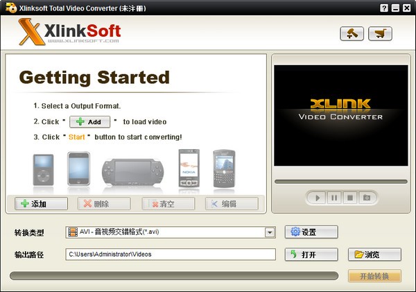 XlinkSoft Total Video Converter是一款简单实用的视频转换工具软件,支持多种视频格式,比如AVI, FLV, 3GP, MP4, MPG等,并且支持与AVI, MPEG, WMV, MP4, FLV, MKV等各种视频格式之前相互转换。