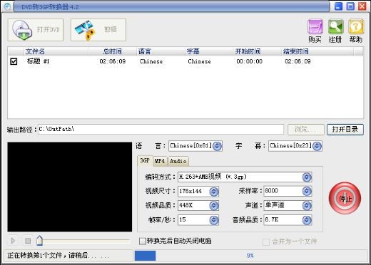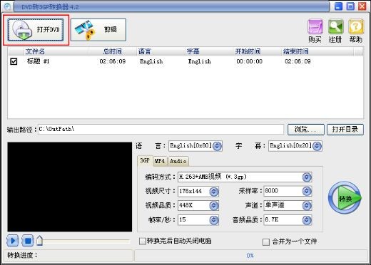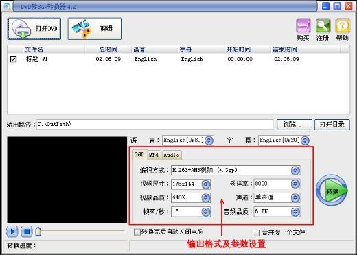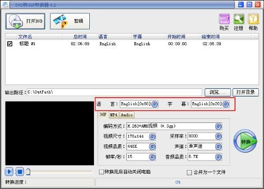 (2) 从DVD光盘中抓取转换所需的音频和字幕与DVD电影一起输出手机支持的3GP、3G2和MP4/MPEG-4视频;