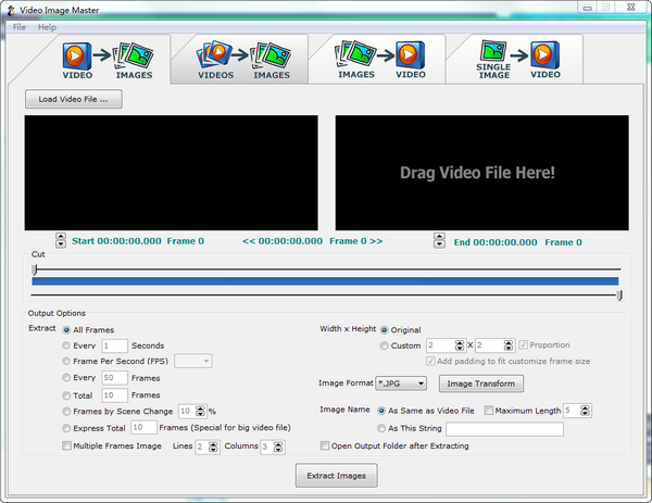 Video Image Master Express官方版可以通过将帧与视频流分开来将剪辑转换为一组图像。例如,如果播放的前几秒为空白,则可以修剪视频的时长,然后选择转换选项。
