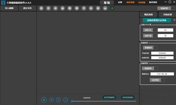 1、视频剪辑,在大神视频编辑软件可以去除片头片尾,可以按指定时间剪辑,可按标记剪辑画面!