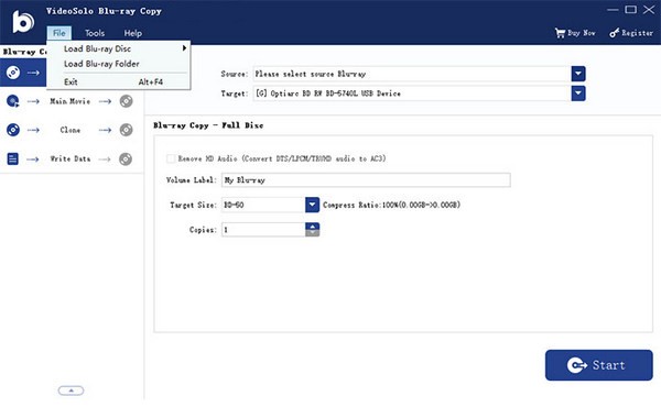 想要复制 BD-50 光盘但只有 BD-25 空白光盘?别担心。VideoSolo Blu-ray Copy 可以将 BD-50 压缩为 BD-25,质量一尘不染。无论是复制完整的蓝光还是复制主要电影,此应用程序都可以压缩内容以完美适合 BD-25 光盘。