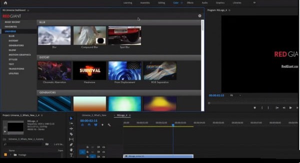 与插件合作从未如此简单。在Premiere Pro和After Effects中,新的可停靠的仪表板将所有Red Giant Universe工具集中到一处,从而简化了探索和应用整个效果和预设库的过程。您还可以将效果保存为收藏夹,并轻松找到您最近使用过的效果。Dashboard的修改版本也可用于Adobe Creative Cloud之外的其他应用程序,并且是探索库中的效果和预设的好方法。