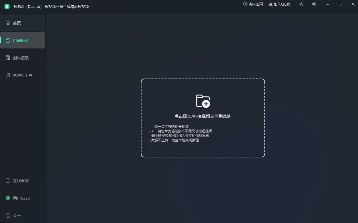 短影AI(Duan.ai)是一个以人工智能驱动的长视频本地离线生成短视频内容创作软件,专为内容创作者设计,一键将长视频生成多个爆款短片,提高短视频内容创作效率。