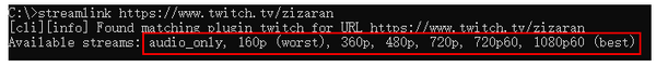 可以先不加清晰度参数运行一次,它会自动显示支持的清晰度,然后添加显示的清晰度后再运行,命令成功运行的话会自动启动设置的本地播放器播放直播。