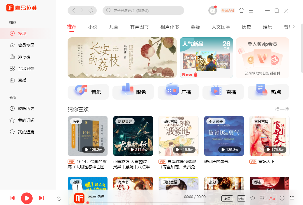 喜马拉雅电脑版是一款非常优秀的在线FM播放软件或听书工具。喜马拉雅除了拥有海量的节目音频之外,也已成为音频创作者们集中活跃的平台之一。喜马拉雅是国内知名的在线音频分享平台,集有声小说、相声、评书、新闻、音乐、脱口秀、笑话段子、英语、儿歌儿童故事为一体的音频电台,超过亿条免费声音内容等你来听,想听啥都有! 超方便!支持在线听、wifi批量下载听,一键下载听,为大家提供每一天的精神食粮!