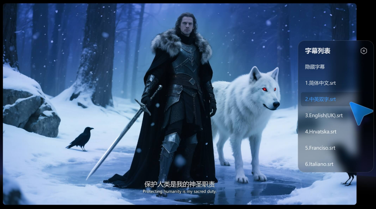 5、强大字幕功能:支持在线字幕、本地字幕匹配。