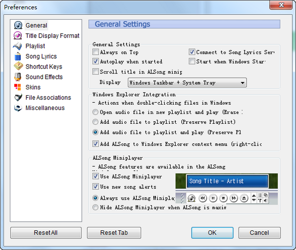 ALSong支持以下格式:MP3、OGG、WAV、APE、FLAC、光盘音频等等;