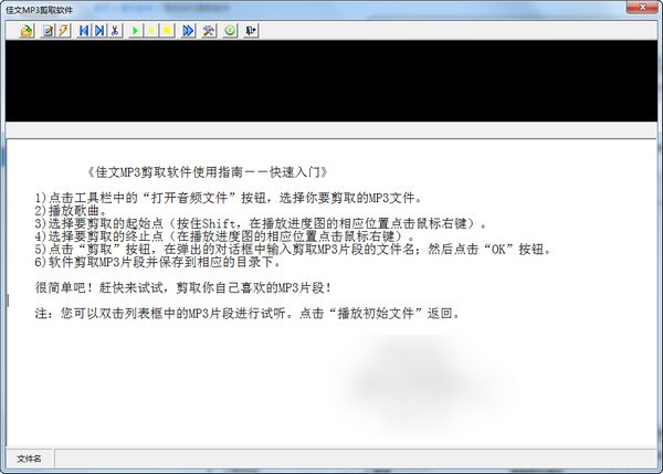 佳文MP3剪取软件是一款简单小巧的音频文件剪辑工具,用户可以通过佳文MP3剪取软件从mp3文件中剪切出需要的片段,界面简洁直观,操作简单易上手,还能够即时试听剪辑片段,十分实用。