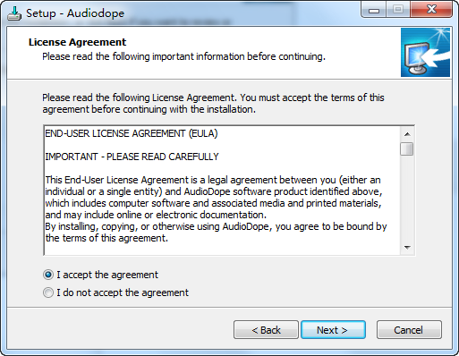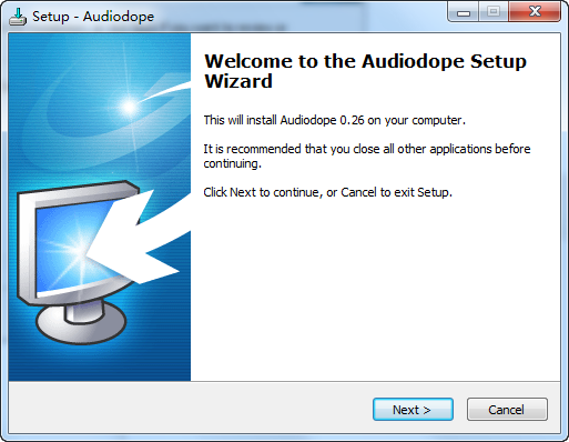 1、下载并双击运行Audiodope_Setup.exe文件,进入欢迎界面,点next
