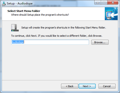 4、选择开始菜单文件夹,点next